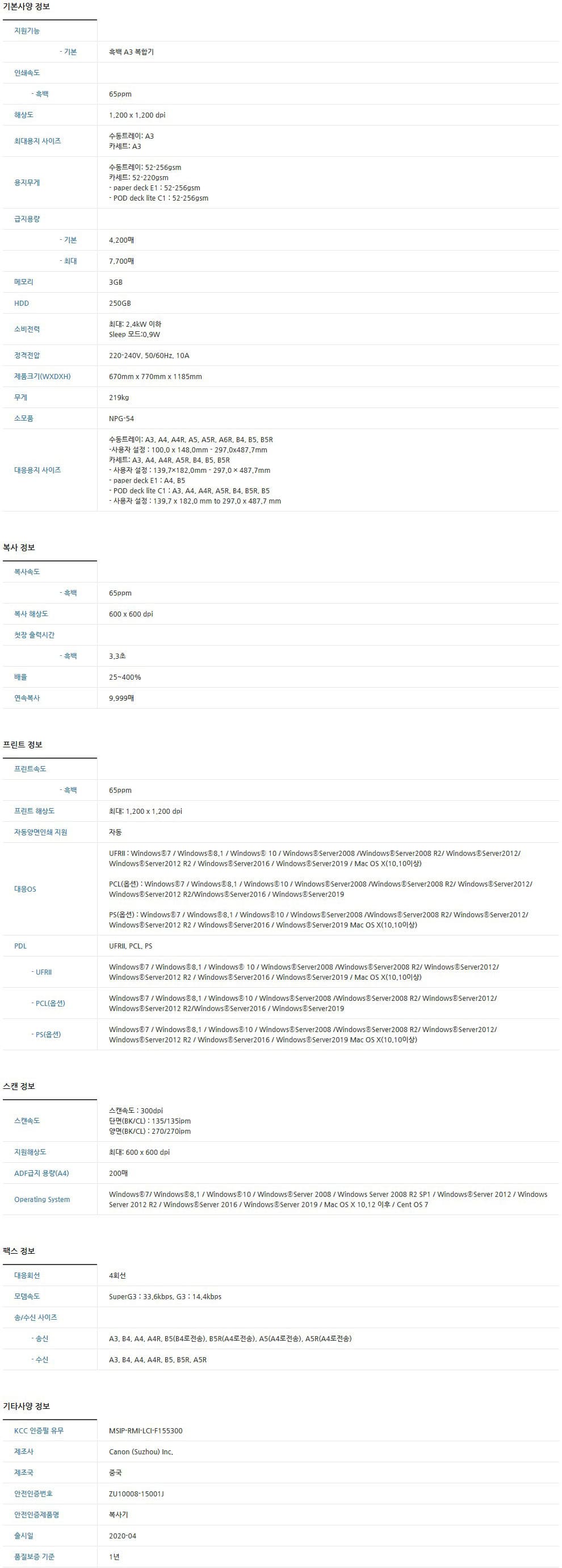 캐논 iR ADV DX 6765 (분당 65매 출력속도/신품)