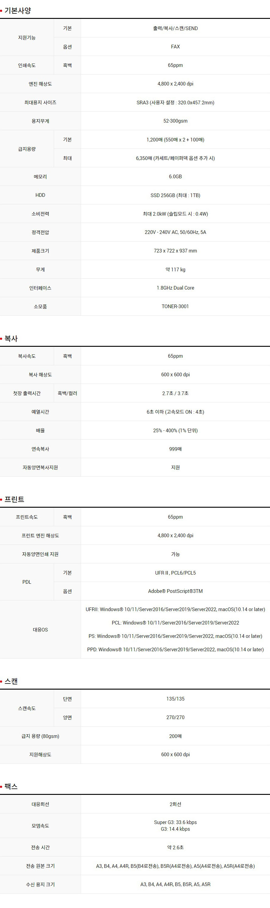 캐논 imageFORCE C7165 (분당 흑백/칼라 65매 출력속도 / 신품)