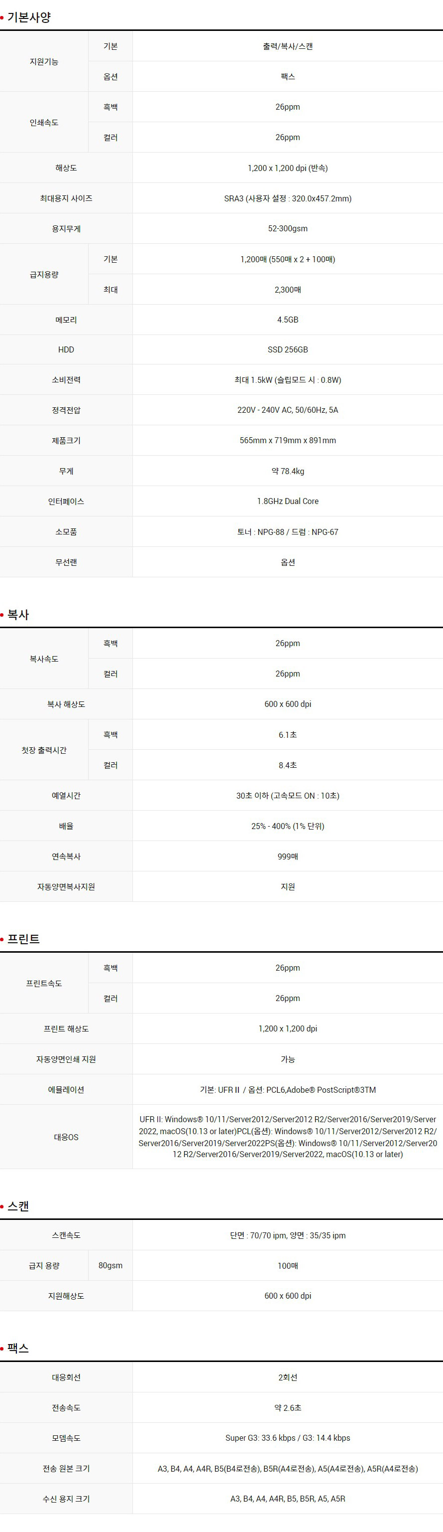현재위치 : 홈 > 판매상품 > 칼라복합기 > 캐논 iR ADV DX C3926